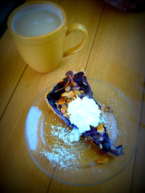 And although we’re not dessert people, I couldn’t resist trying the blueberry and goat cheese pie. My husband wasn’t that impressed, but I liked it and the goat cheese left a hint in my mouth of the days I’d visit my cousin’s cow barn. (That means sweet and extremely earthy if you haven’t been.) I also tried a latte with housemade black walnut flavoring (although it was either quite subtle or someone forgot it).