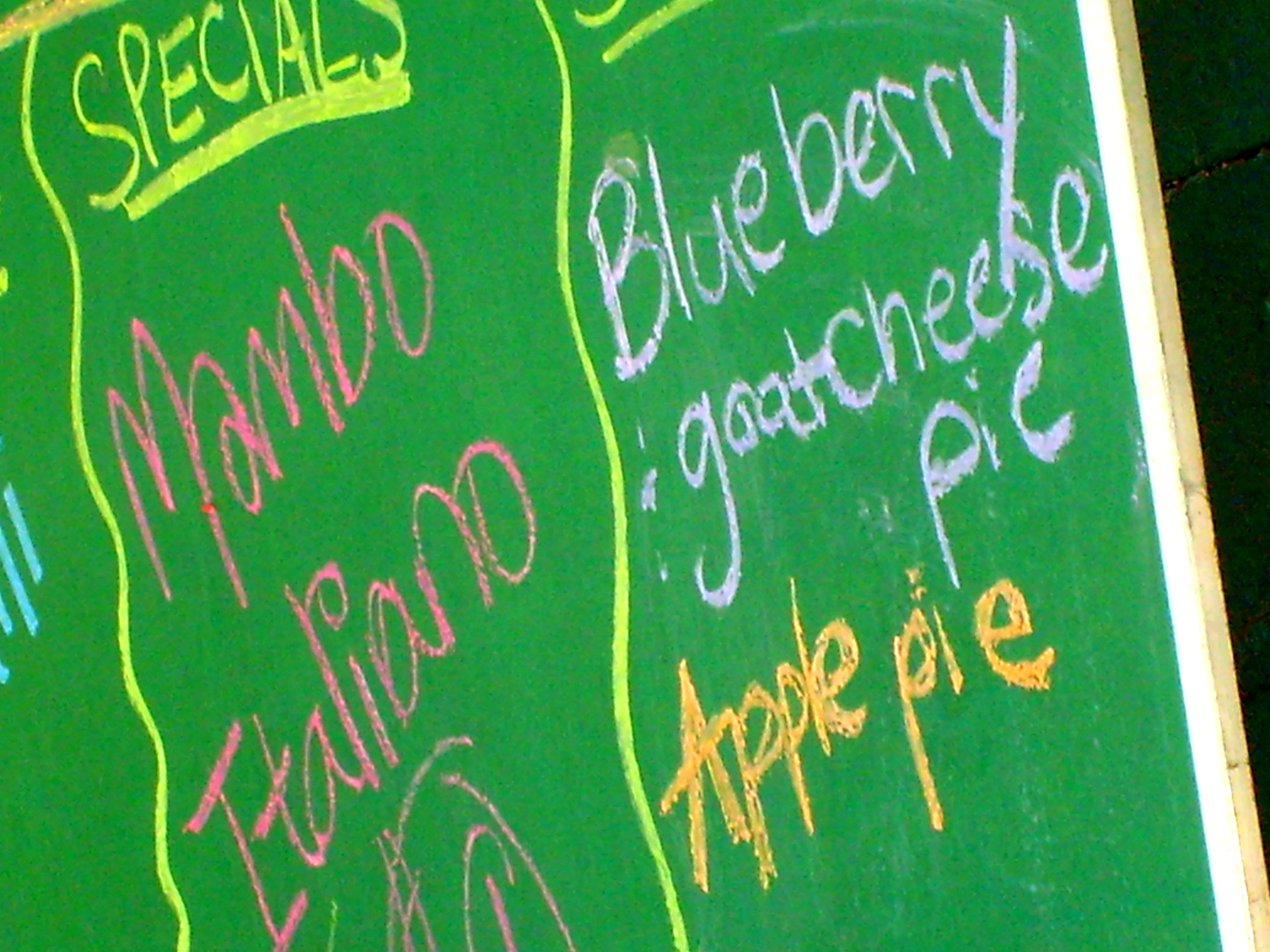 No, it’s not owned by three sisters, although the middle-aged women who own, cook, and serve breakfast, lunch, and now dinner at this old Victorian home on Guilford seem like they belong to some sisterhood dedicated to fresh ingredients, no-nonsense service, and healthful and creative dishes, like the Mambo Italiano, which is one of the best sandwiches I’ve ever eaten (and dug into so quickly I forgot to take a picture of it). So you go ahead and picture fresh tomatoes, pesto, and mozzarella on bread completely crusted with melted parmesan. I heard Dean Martin crooning as I ate it. The ginger mango tea was strong and unsweetened and fit perfectly on that shaded porch where I kicked off my flip-flops and rested my feet on my husband’s lap while we chatted.
