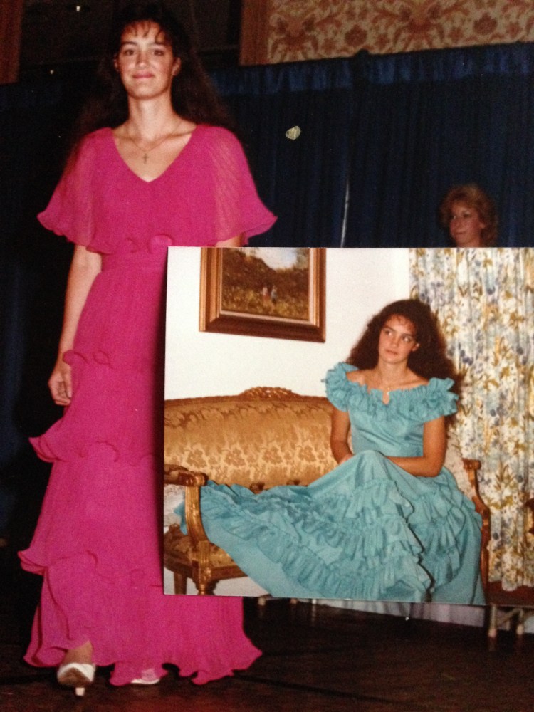 Junior prom dress and (inset) Senior prom dress and a sideways look that says, That dress was SO 1983.