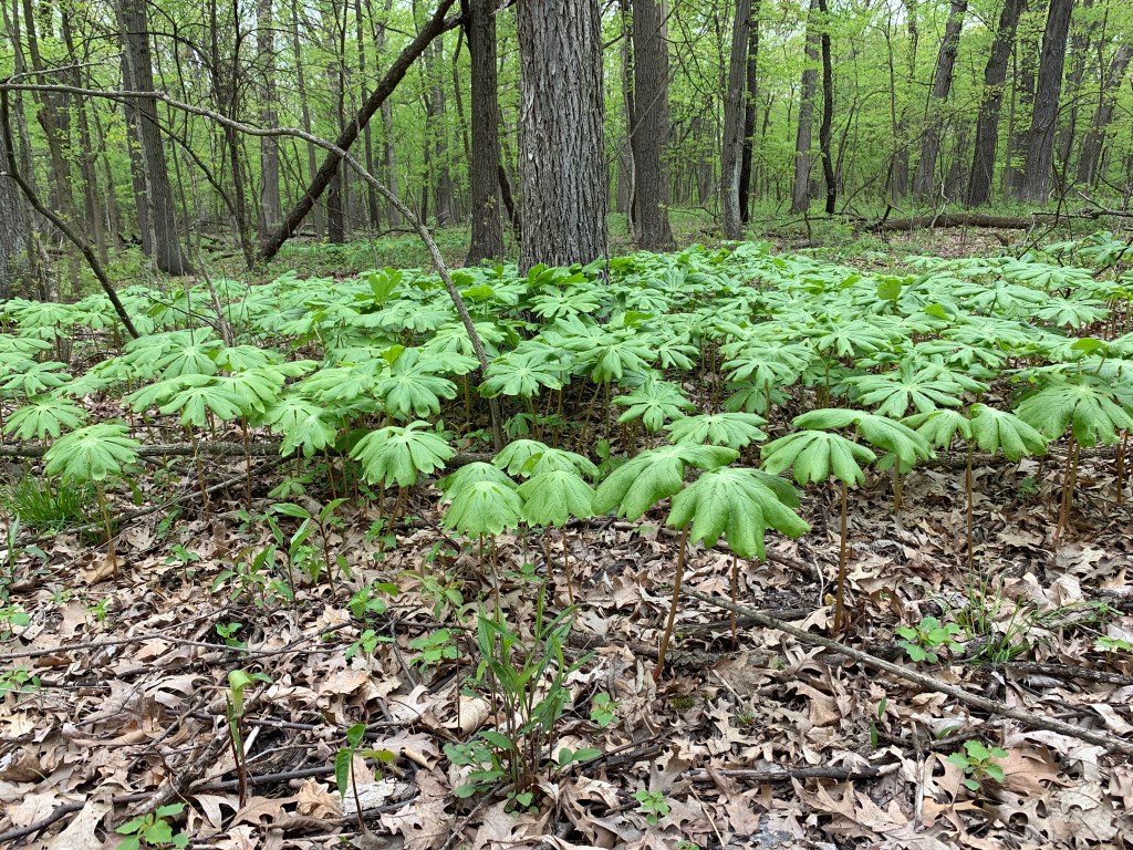 I’ve never heard of a mayapple. How interesting. The thought about this unique time being like an off trail hike makes me smile. Thanks for this thought!