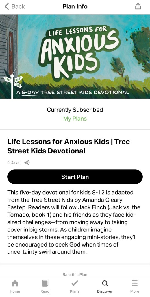 As part of the release of books 1 and 2 in the Tree Street Kids series, I also wrote βLife Lessons for Anxious Kids,” a FREE 5-day, devotional available through the YouVersion Bible app.