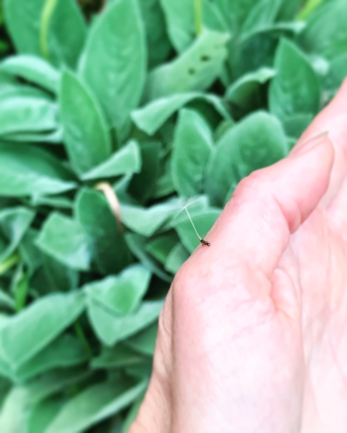 An ant I saw carrying a dandelion seed
